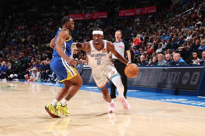 雷霆过去4场连赢掘金、独行侠、公牛与尼克斯收获4连胜,勇士上一场客场115-113险胜火箭,本赛季前三次交锋雷霆均战胜勇士。本场勇士缺少库里、巴特勒与穆迪、梅尔顿,雷霆缺少霍姆格伦、杰伦、卡鲁索、哈尔滕施泰因。首节开局雷霆6-0领先,勇士一波8-2攻势追平,雷霆连得5分,克赖尔三分命中。雷霆多点开花一波9-2攻势取得领先,勇士回敬一波10-2攻势追到差1分,雷霆内外开花重新拉开比分,首节结束雷霆34-28领先勇士。首节勇士三分17中5,波杰姆斯基7中2得到4分3助攻与追梦6分;雷霆三分10中6,亚历山大5中1得到5分。